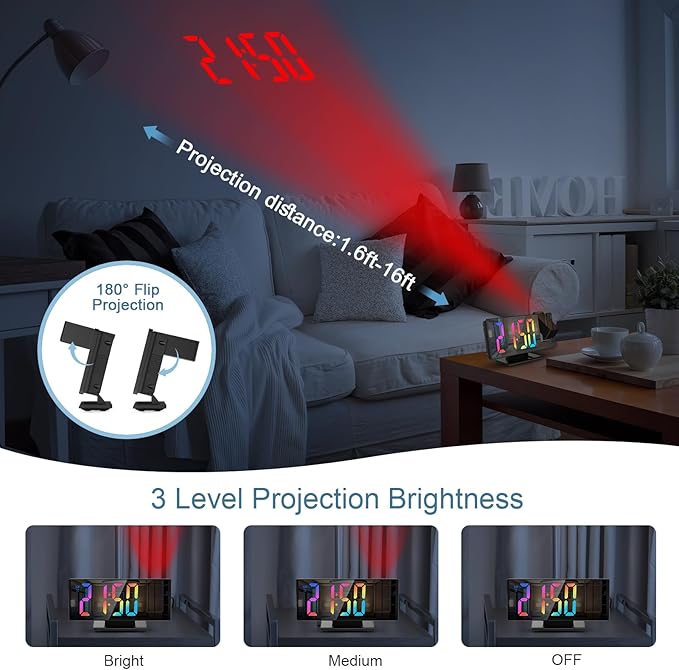 ميزة عرض الساعة على السقف أو الحائط تتيح رؤية الوقت بسهولة دون الحاجة للنظر إلى الشاشة مباشرة، خصوصاً أثناء الليل