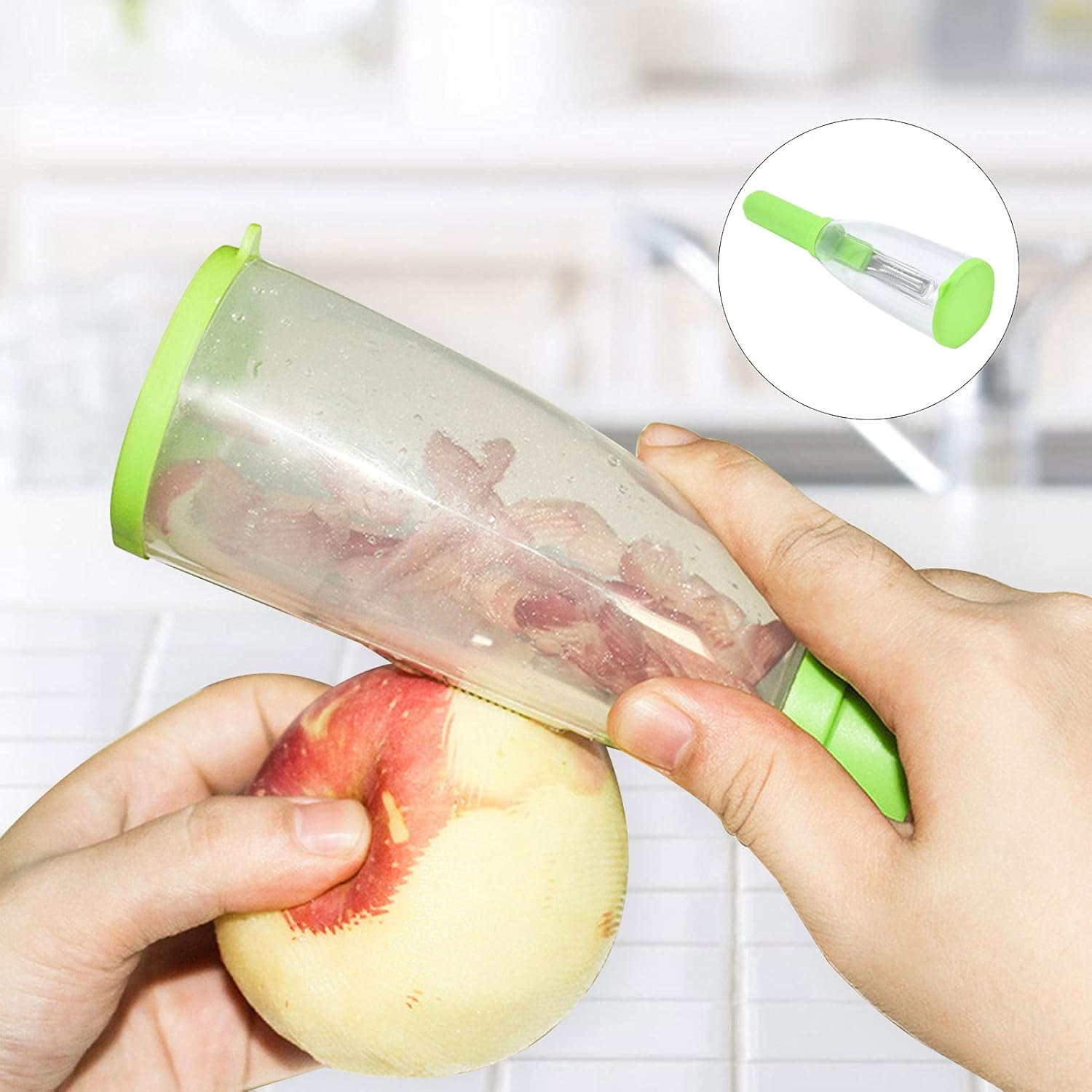 تصميم مريح مع صندوق تخزين: تحتوي على صندوق لجمع القشور أثناء تقشير الفواكه والخضروات بسهولة