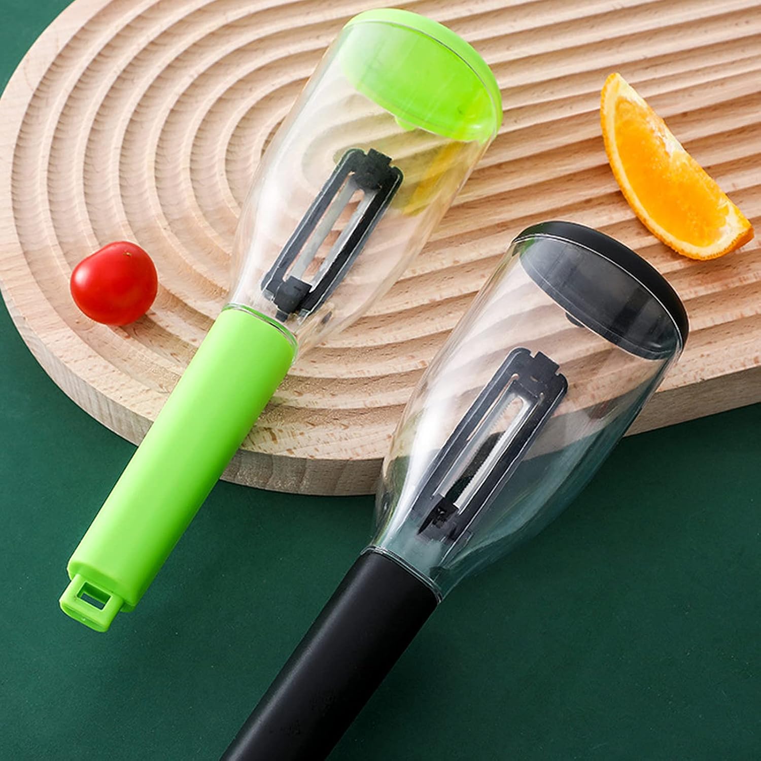 تصميم مريح مع صندوق تخزين: تحتوي على صندوق لجمع القشور أثناء تقشير الفواكه والخضروات بسهولة