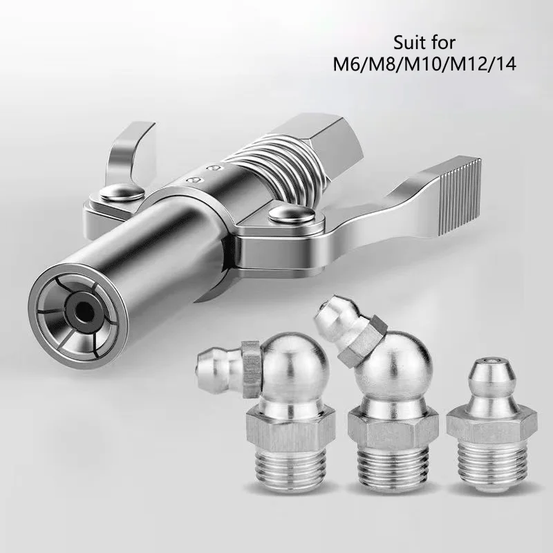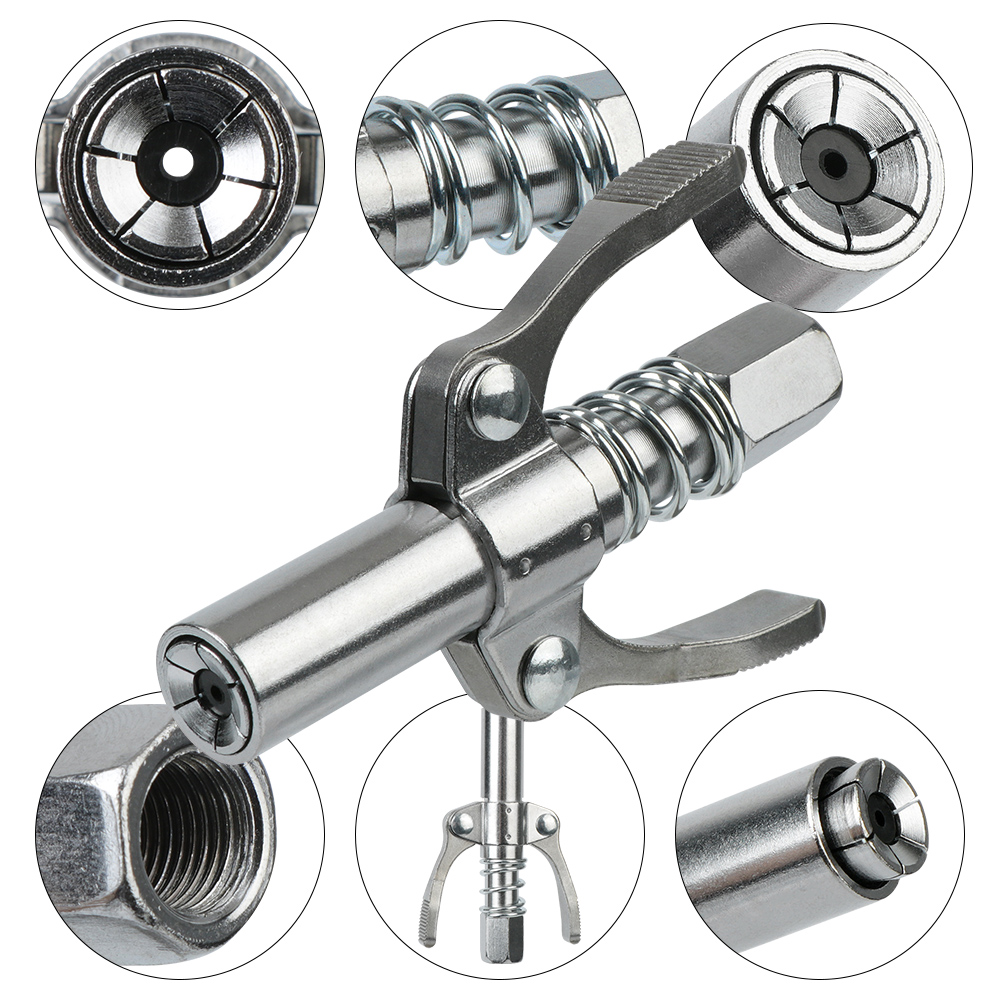 منع التسرب: بفضل الفكوك المحسّنة وحشيات الختم الممتازة، تمنع الأداة تسرب الشحم حتى عند الضغوط العالية، مما يحافظ على نظافة مكان العمل ويقلل من إهدار الشحم.